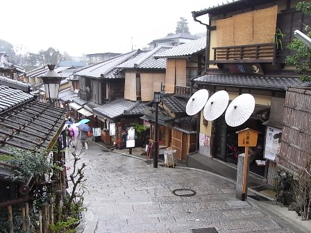 祇園から清水寺に向かう途中の二年坂。京都ならではのお土産や食べ物が満喫できます。石畳の坂を登って清水寺に向かう道のりはたくさんの想い出を作ってくれるでしょう。